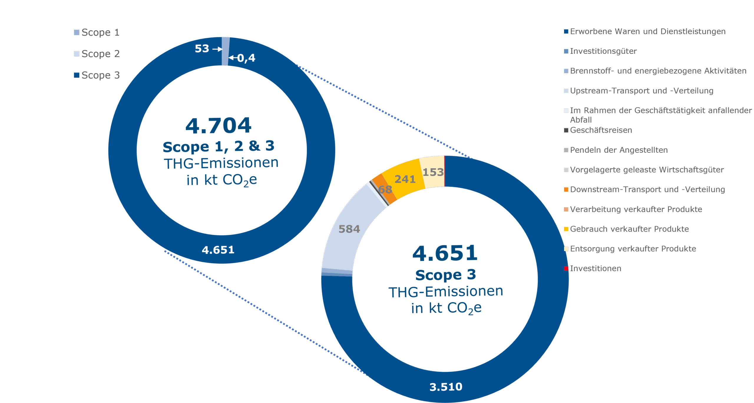 Die THG-Emissionsquellen werden dabei in folgende Kategorien gegliedert: alle direkten Emissionen (Scope 1), indirekte Emissionen, die bei der Erzeugung von eingekaufter Energie entstehen (Scope 2) und alle Emissionen in der vor- und nachgelagerten Wertschöpfungskette (Scope 3).