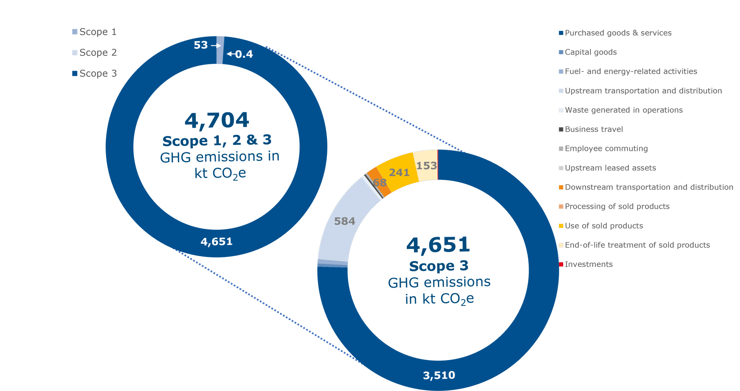 In this context, GHG emission sources are categorized and considered in the following common categories: all direct emissions (Scope 1); indirect emissions that are generated when creating purchased energy (Scope 2); and all emissions on the upstream and downstream value chain (Scope 3).